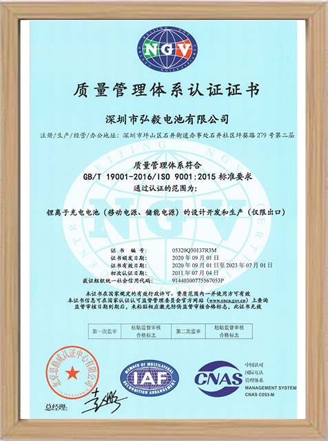 22年来,弘毅以市场为导向,坚持产品创新,依靠严格的技术和质量控制,荣获最佳企业奖和国家高新技术企业称号,通过了ISO9001,ISO14001,BSCI体系认证,我们的户外电源、汽车电瓶、电动车电瓶、磷酸铁锂电池组都获得了相应的CE,FCC,ROHS,MSDS,UN38.3认证报告。